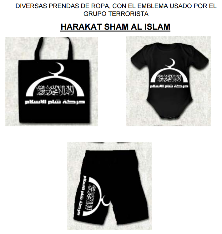Según informó el Ministerio del Interior, dentro de esta actividad contaba con una tienda online desde la que distribuía por España y Portugalcamisetas con imágenes de atentados cometidos por los terroristas del autodenominado Estado Islámico (EI), así como otras prendas de vestir con los emblemas de este grupo terrorista y el de la organización Harakat Sham al Islam.