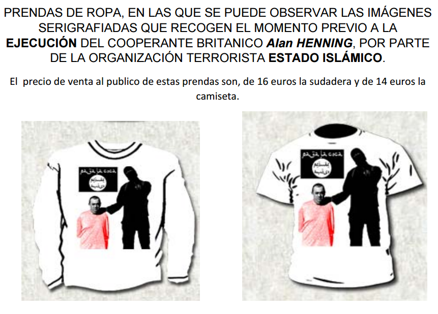 En su perfil de Facebook llegó a publicar una imagen previa a la ejecución del británico Alan Henning, acompañado por su verdugo y por la bandera del autoproclamado Estado Islámico (EI). Y con esta imagen confeccionó camisetas que tenía a la venta en su tienda de ropa online, con difusión en Portugal y España. Estas prendas también las vendía en un local comercial de su propiedad.